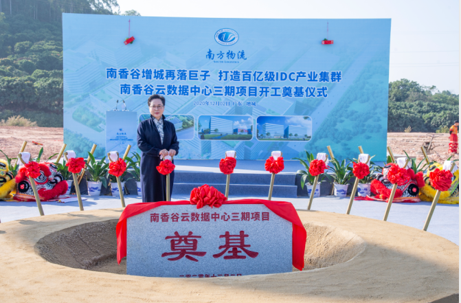 张文杰局长致辞中表示:受张火青书记、赵国生区长的委托,代表区委、区政府对南香谷云数据中心三期开工奠基仪式表示热烈的祝贺,对支持增城区经济建设的各界朋友们表示衷心的感谢。在国家大力发展新基建的浪潮下,数据中心等基础设施建设成为重中之重。最新发布的‘十四五规划’中,大数据中心建设更是与5G、工业互联网一同被提及,成为未来国家战略中的一个重要衡量指标。以“大数据、互联网+电子商务、现代物流”为核心的的IDC产业集群,为增城区乃至粤港澳大湾区的人工智能、5G、云计算、大数据、物联网等新一代信息技术发展,提供强有力的基础设施保障。南香谷云数据中心是我区布局数字经济的一项重要部署,也是促进我区经济结构转型升级的一件大事,对加速信息化与工业化融合起到重要的推动作用。